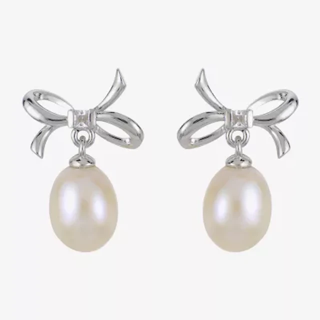Womens Dyed White Cultured Freshwater Pearl Sterling Silver Drop Earrings