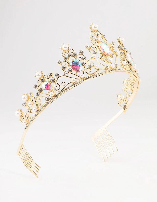 Gold Pear Shaped Stones & Pearls Tiara