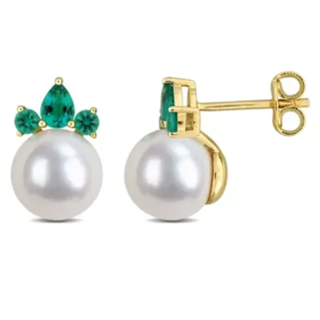 Lab Created Pearl & Gemstone Floral Drop Earrings