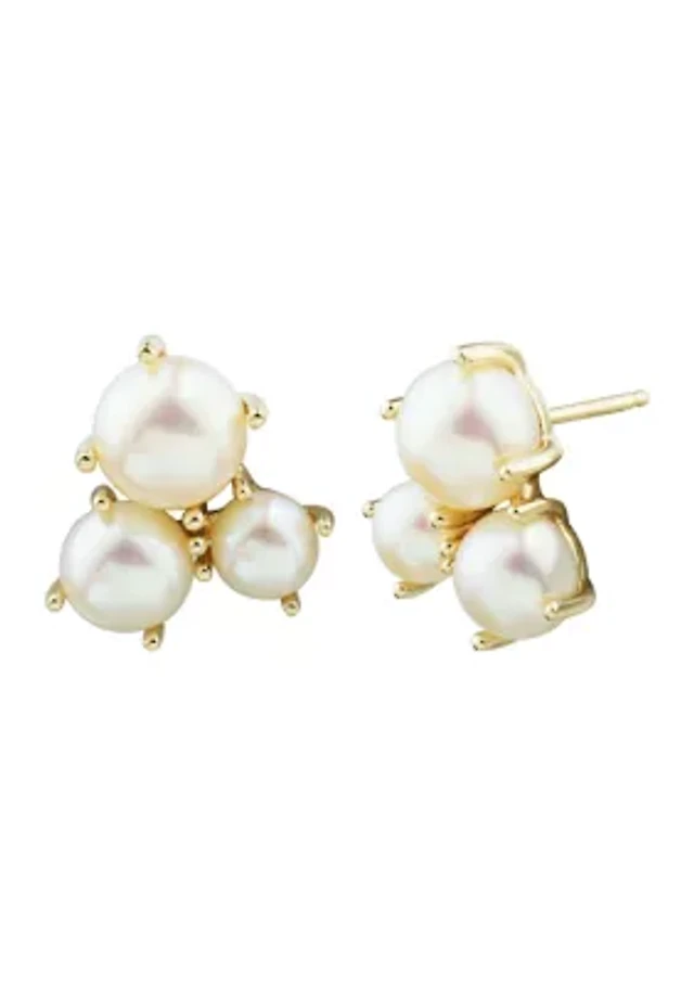 Cultured Pearl & White Lab-Created Sapphire Fashion Ring 10K Yellow Gold
