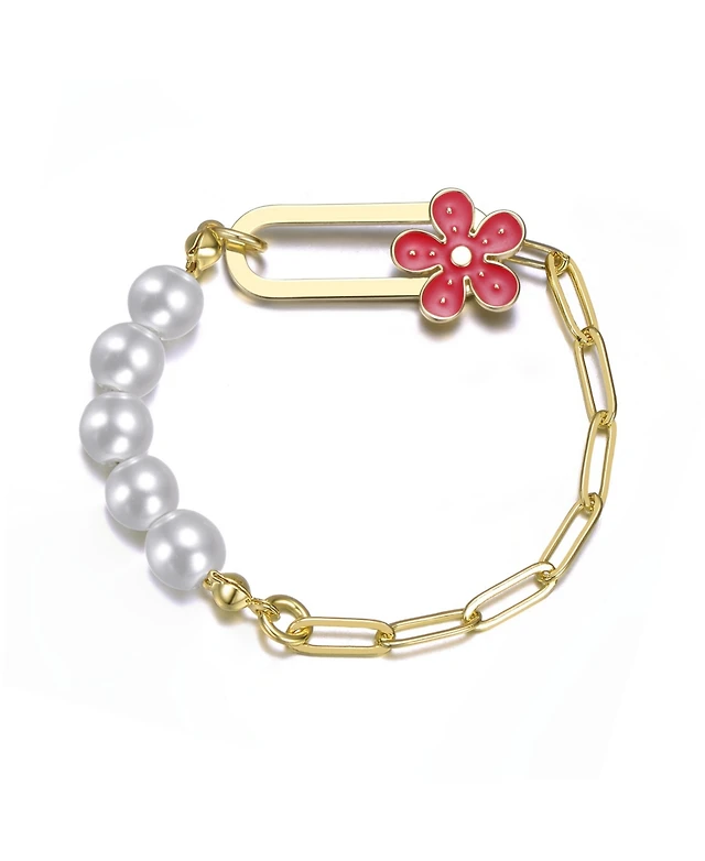 Southern Living Two Tone Link Line Bracelet with Coin and Pearl Pendant