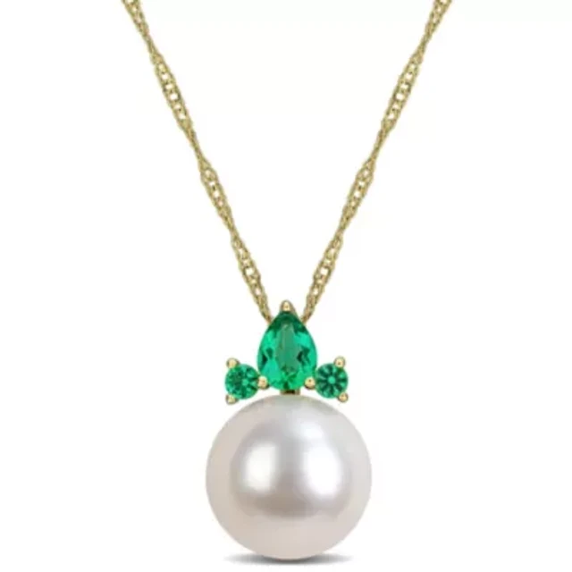 Macy's Two Tone Pearl (8.5mm) Front & Back Earrings in 14K Yellow Gold