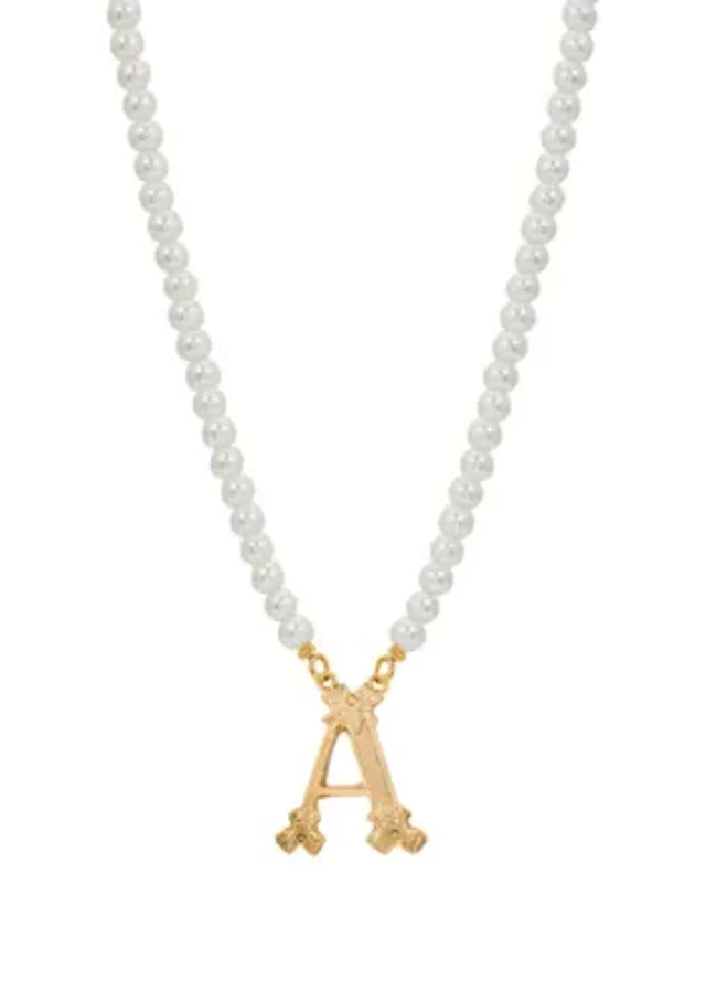 Gold Tone Initial Fx Pearl Pendant 16Adj