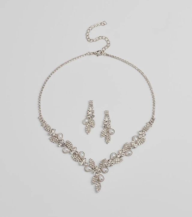 Imitation Pearl and Cubic Zirconia Crystal Halo Pendant Silver Plate 18"