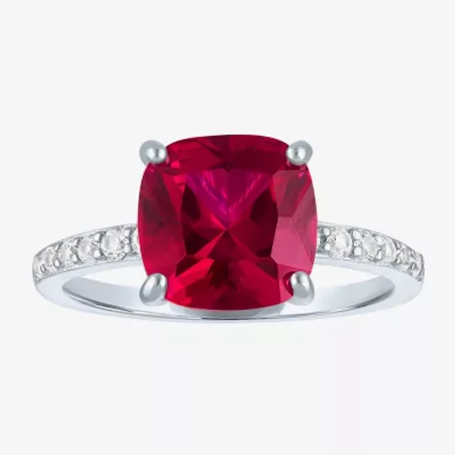 Womens Lab Created Gemstone Sterling Silver Side Stone Solitaire Cushion Cocktail Ring