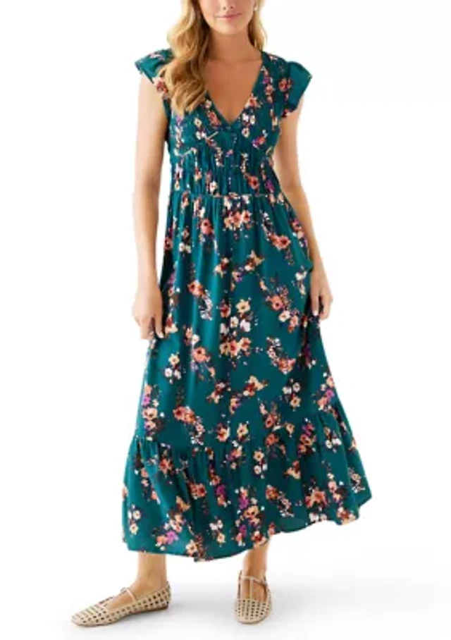 Ann Taylor V-Neck Ruffle Maxi Dress Lakeside View Women's