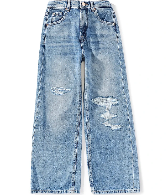 KatieJNYC Big Girls Chicago Bow-Embroidered-Pocket Low-Rise Wide-Leg Jeans