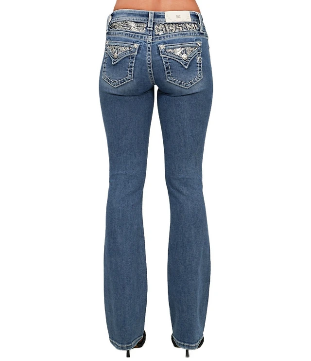 Miss Me Loose Saddle Border Stitch Flap Pocket Low Rise Bootcut Jeans