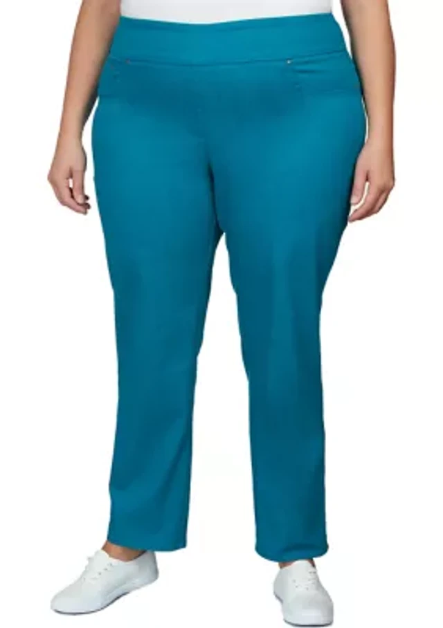 Allison Daley Chambray Straight Leg Stretch Denim Elastic Waist Pull-On Jeans