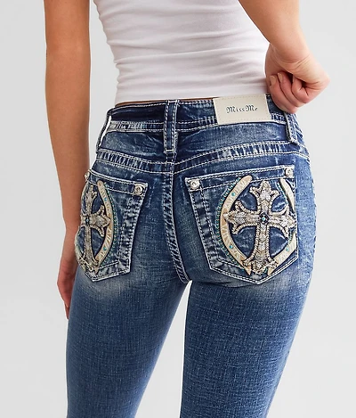 Nurture Petite Mid Rise Embroidered Straight Ankle Jeans