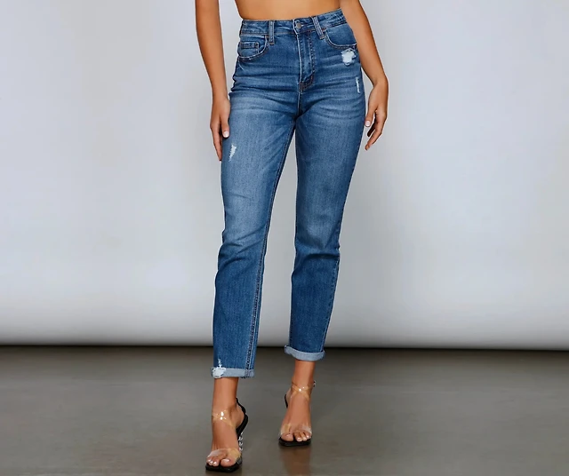 High Rise Majorly Distressed Straight Leg Jeans