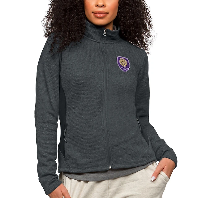 Women's Antigua Heather Charcoal Atlanta United FC Team Logo Course Full-Zip Jacket