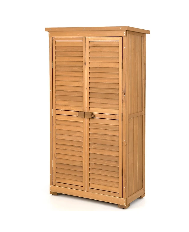 Costway Outdoor Fir Wood Storage Shed Garden Tool Cabinet Locker Tall Vertical Organizer