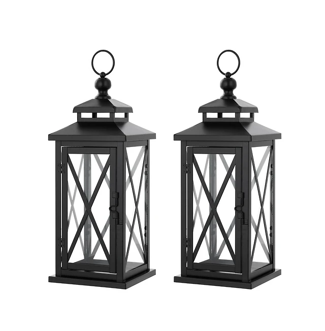 Glitzhome Set of 2 Mondern Farmhouse Wooden Lantern