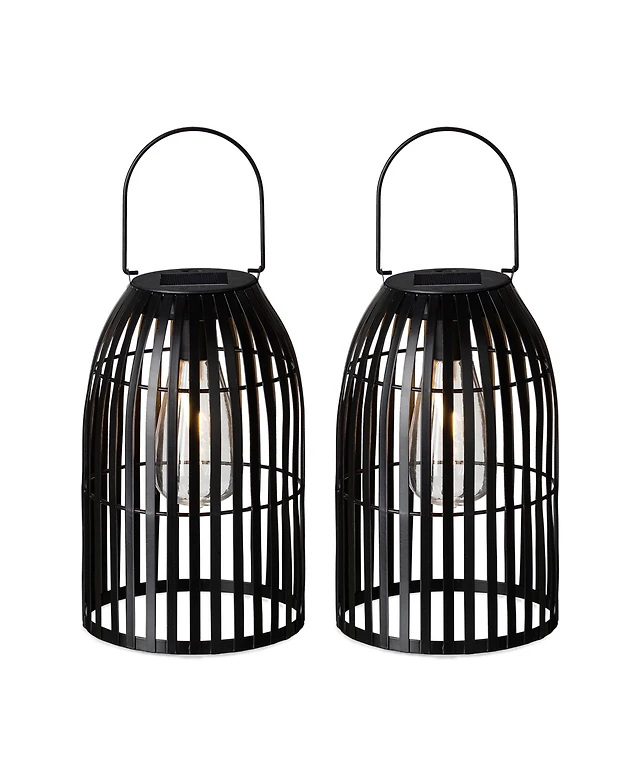 Glitzhome 9.75" H Set of 2 Metal Stripes Solar Powered Edison Bulb Outdoor Hanging Lantern
