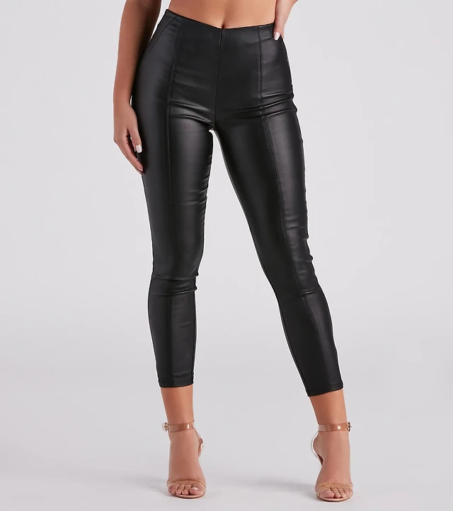 Edgy Appeal Faux Leather Coated Skinny Pants