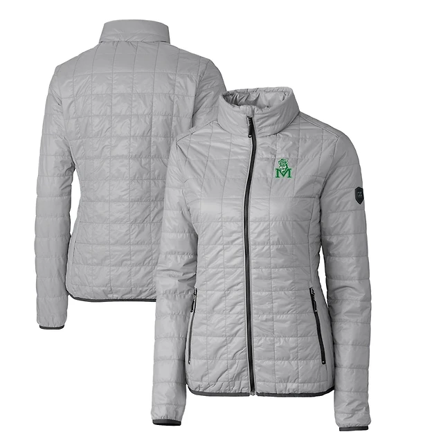 Women's Cutter & Buck Gray Marshall Thundering Herd Vault Rainier PrimaLoft Eco Insulated Full-Zip Puffer Jacket