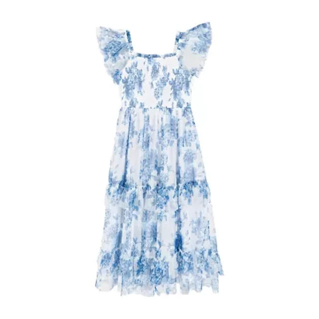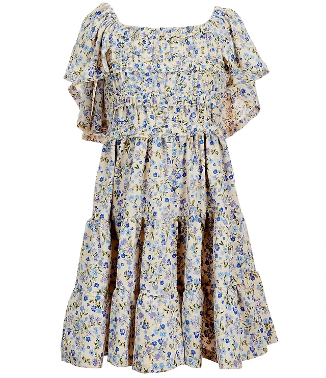 Girls 7-16 Flutter Sleeve Floral Print Tiered Drop Waist Dress