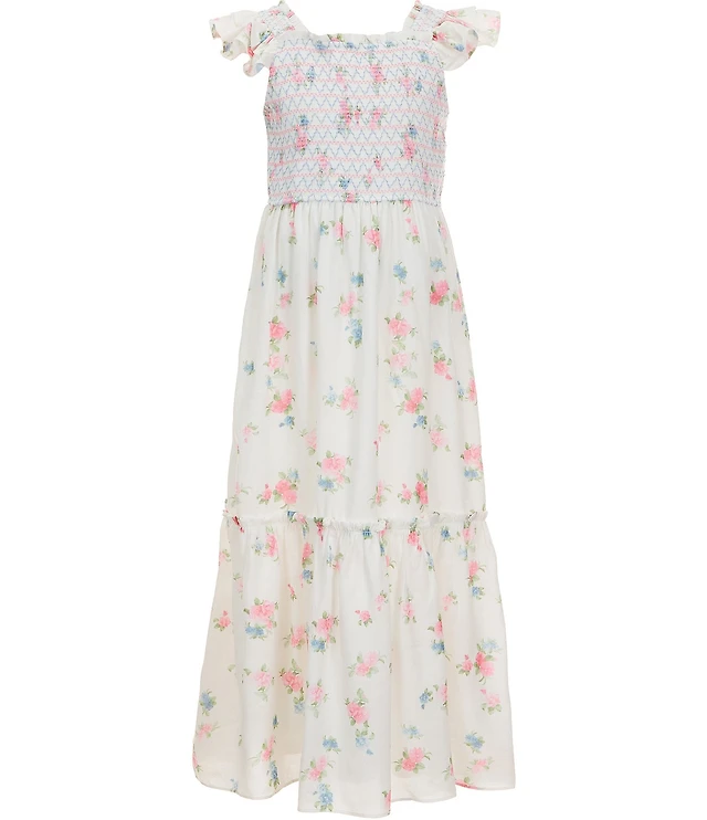 Rare Editions Big Kid Girls Short Sleeve Flutter Floral Maxi Dress