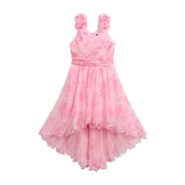 Rare Editions Big Girls Sleeveless Floral-Embroidered Soutache High-Low-Hem Fit-And-Flare Dress