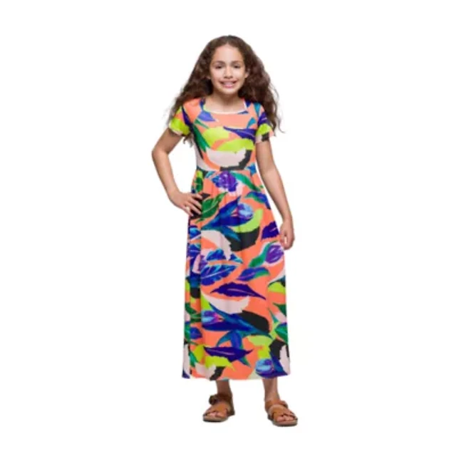 24seven Comfort Apparel Big Kid Girls Short Sleeve Floral Maxi Dress