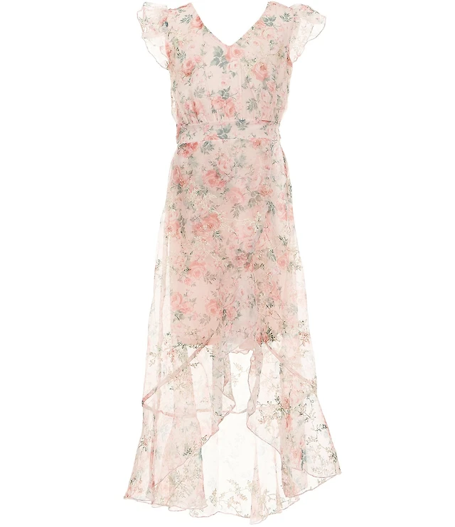 Girls 7-16 Butterfly Print Smocked Maxi Dress
