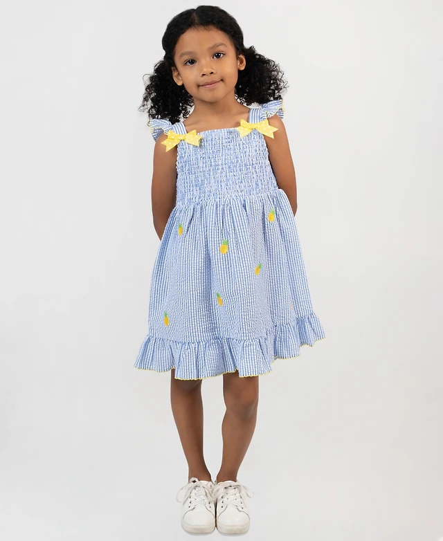 Hope & Henry Toddler Girls Heirloom Sleeveless Special Occasion Seersucker Party Dress with Cross Back