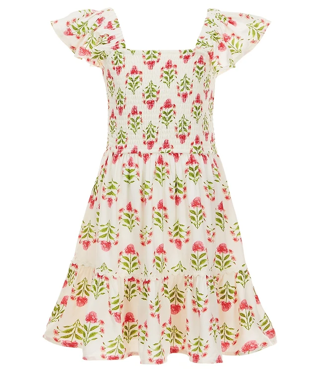 Pink Chicken Girls Cotton Popover Flutter Sleeve Striped Elsie Dress