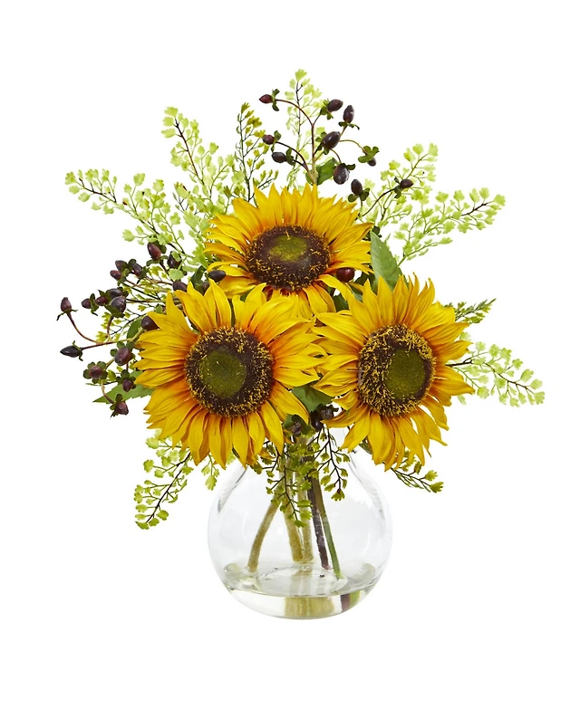 Nearly Natural Sunflower Artificial Arrangement in Vase