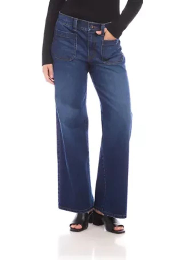 Kancan Women's Ultra High Rise Wide Tapered Fit Pull On Jeans