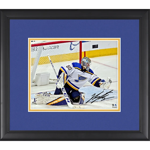 Jordan Binnington St. Louis Blues Framed Autographed 8'' x 10'' Glove Save Photograph