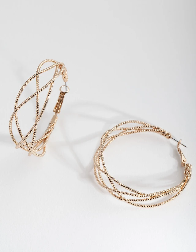Jessica Simpson Womens Spiral Hoop Earrings - Gold-Tone Twisted Hoop Earrings with Crystal Embellishments