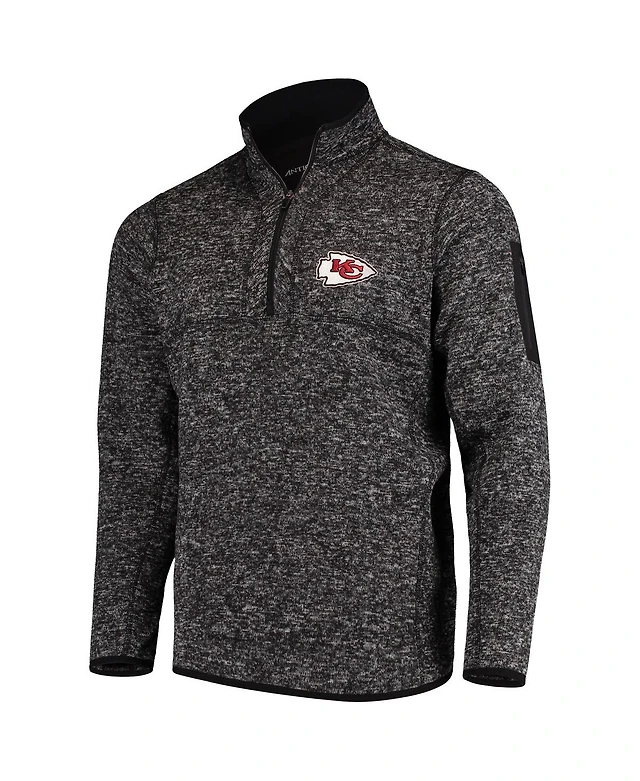 Antigua Men's Heather Black Kansas City Chiefs Fortune Quarter-Zip Pullover Jacket