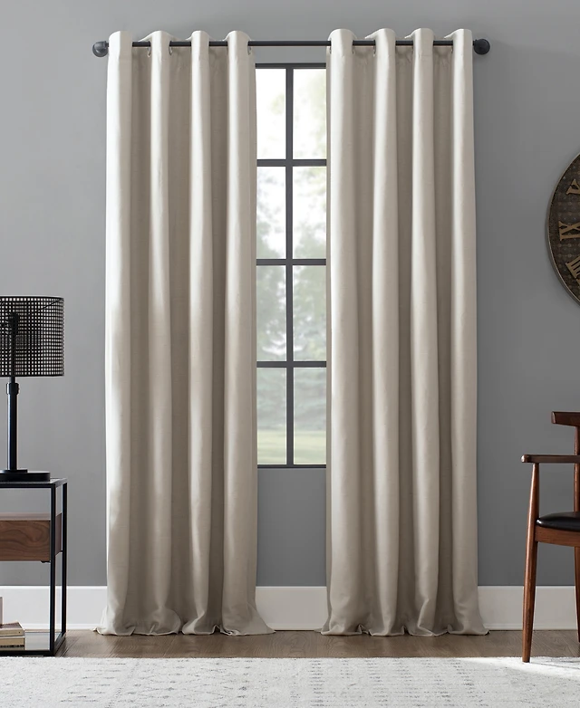 Linen Blend Total Blackout Grommet Curtains Pair