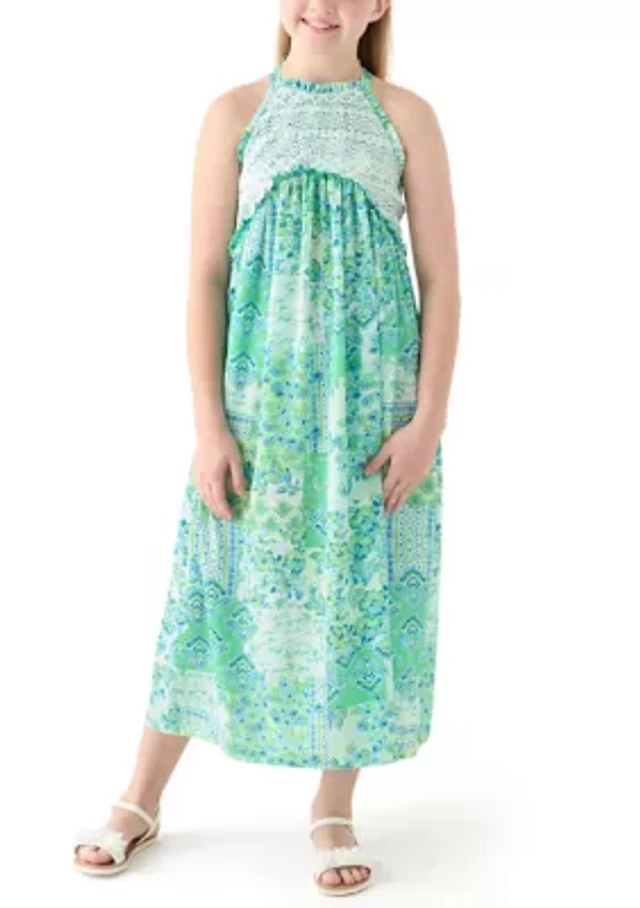 Yumi Women's Mesh Flower With Pockets Wrap Midi Dress