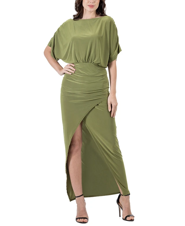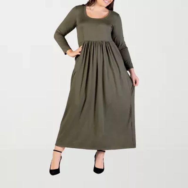 24seven Comfort Apparel Petite Long Sleeve Side Slit Fitted Maxi Dress