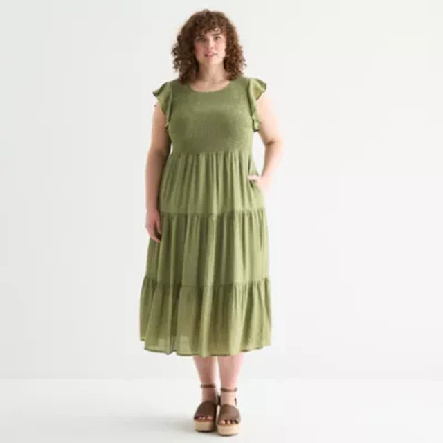RHYTHM Antibes Womens Plaid Midi Dress - OLIVE