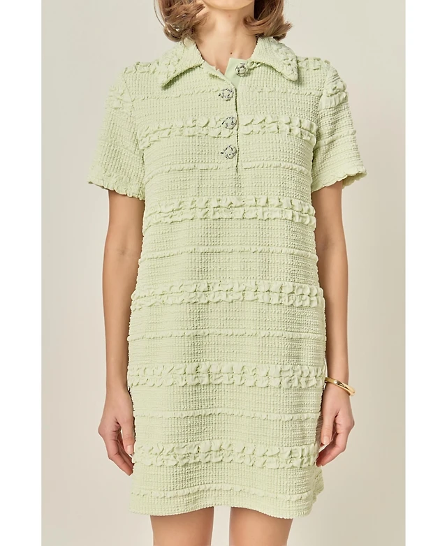 Lara Women's High Neck Beaded Dress with Bell Sleeves