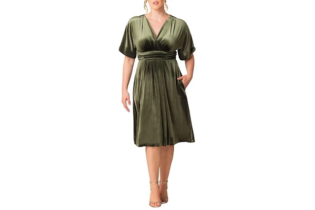 Reistor Women's Short Dress With Smocking Side Detail Light Olive