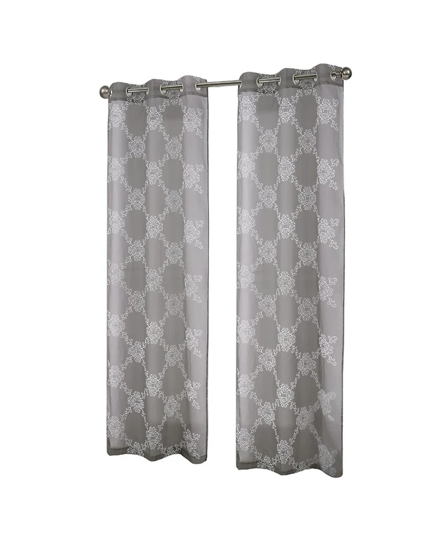 Superior Damask Sheer Grommet Top Curtain Panels, 52" x 84" (Set of 2)