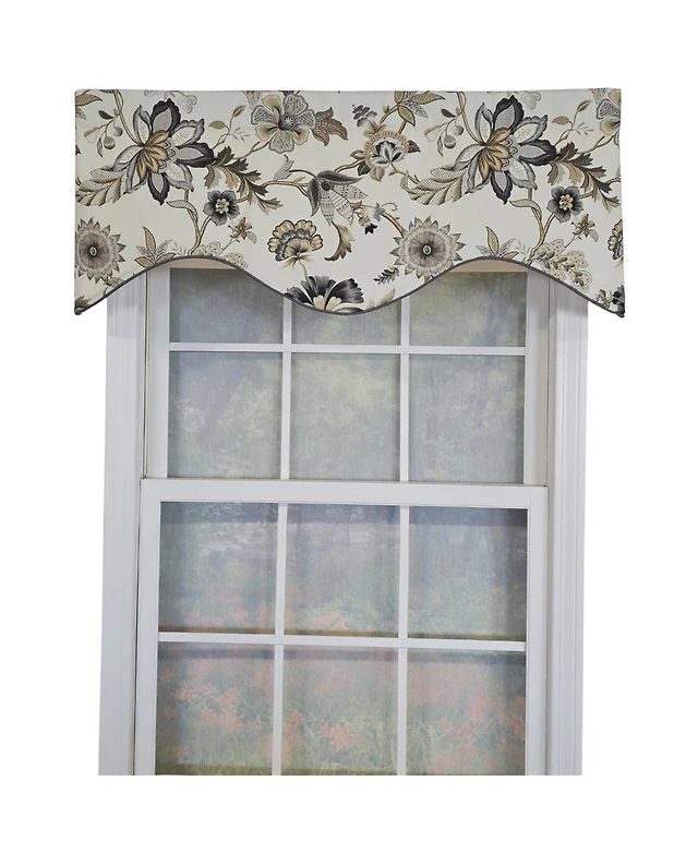 Rlf Home Ozbourne Glory Valance Gray. 3" Rod Pocket, Layered, Trimmed. 50"W X 16"L