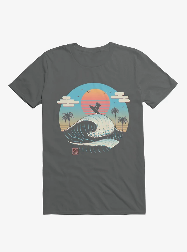 Surfing Waves Summer Vibes Charcoal Grey T-Shirt