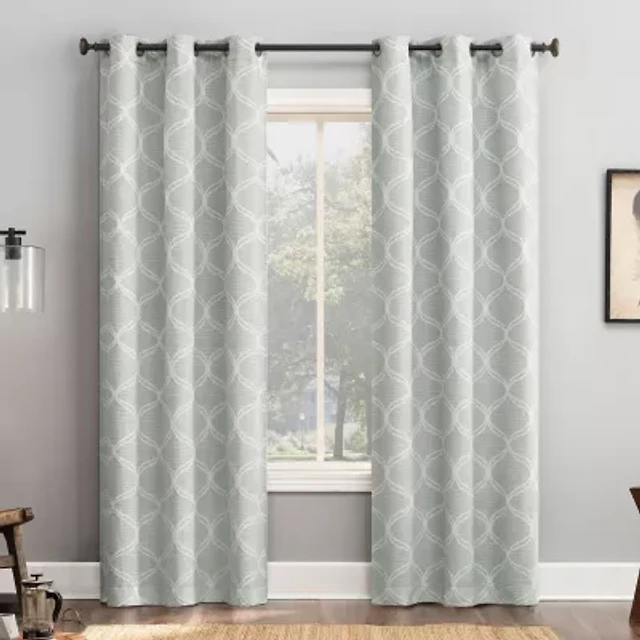 Habitat Abstract Light Filtering Energy Efficeint Grommet Curtain Panel for Windows 52" x 95"in Green