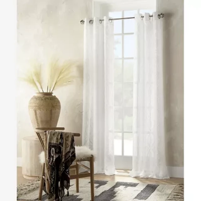 Rt Designers Collection Faye Grommet Metallic Sheer Printed Doily Curtain Panel