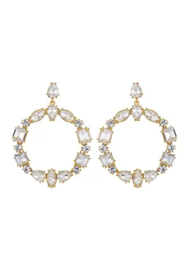 Guess Gold-Tone Crystal Hoop Pave Drop Earrings, Set of 2