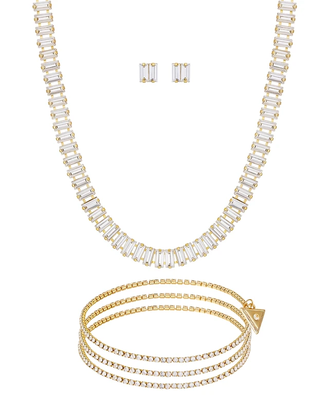 Guess 3-Pc. Cubic Zirconia Gold-Tone Necklace, Stud Earrings, and Bracelet Set