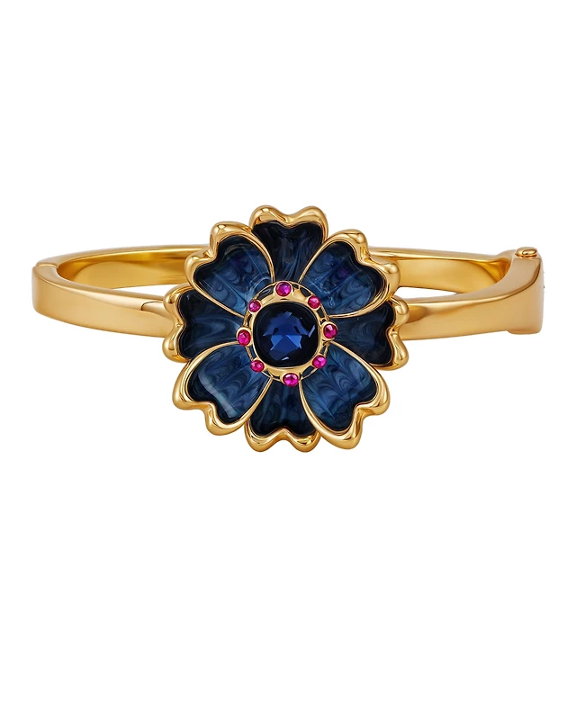 Guess Glass Stone Gold-Tone Floral Hinged Bangle Bracelet