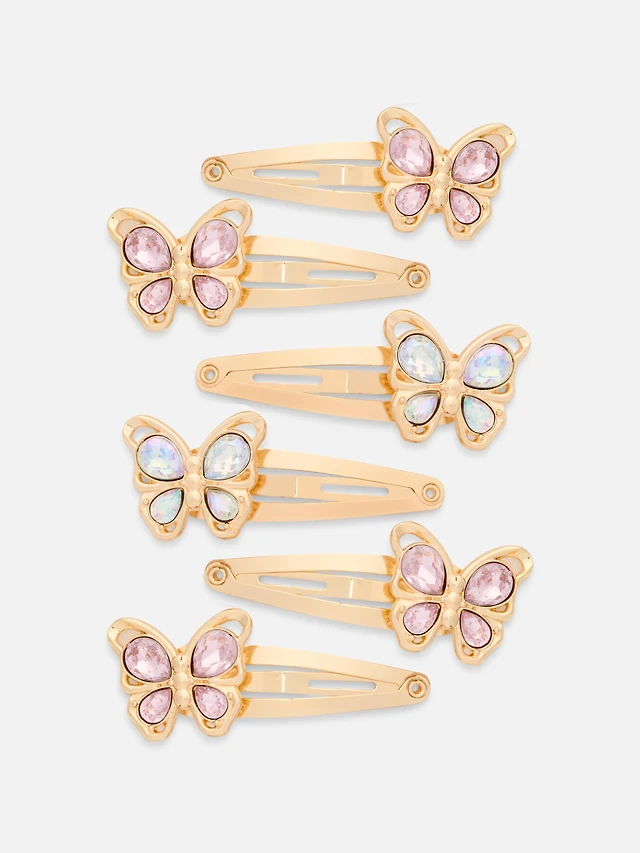 Kids Pink Faux Hair Fabric Butterfly Clips 2-Pack