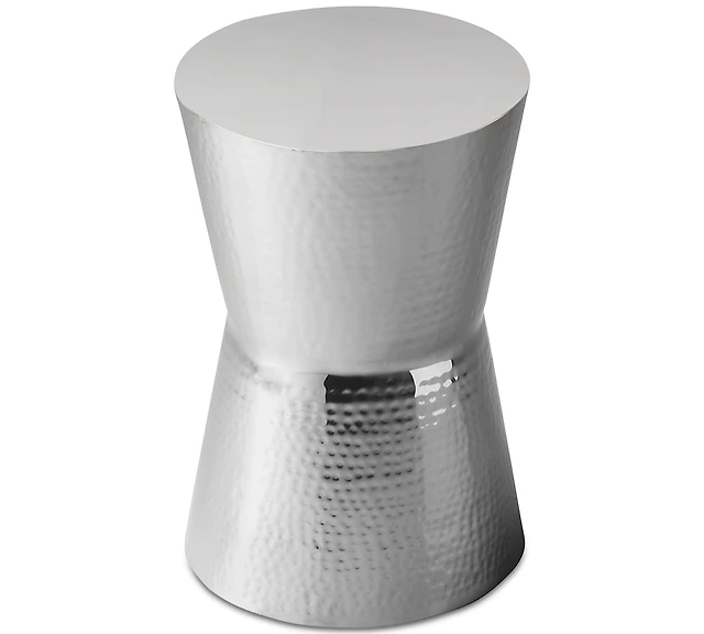 Streamdale Furniture Aluminum Drum End Table with Intricate Design-Silver Nickel