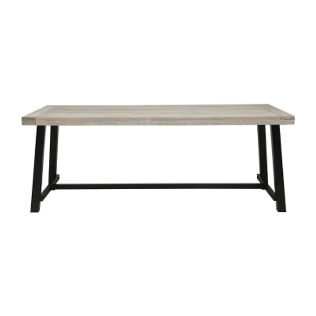 Sugift 6-Person Acacia Wood Outdoor Dining Table with 2 Inch Umbrella Hole